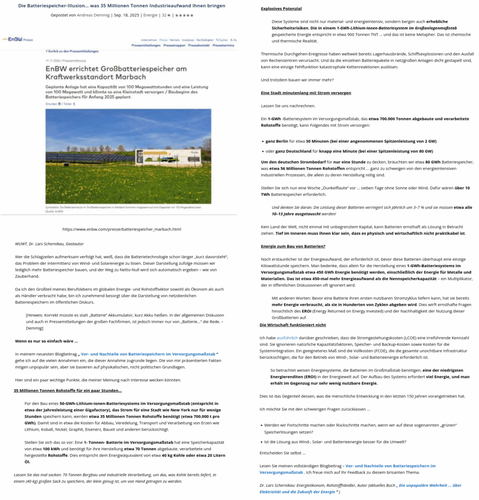 Startseite Batteriespeicher Die Batteriespeicher-Illusion