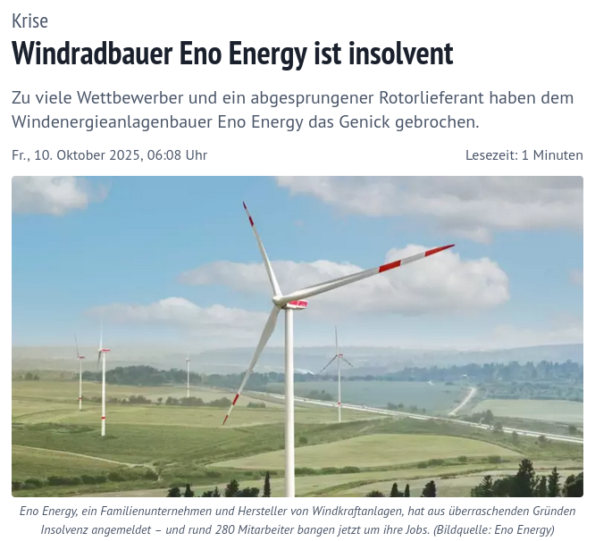 Eno Energy reiht sich in eine Reihe von Insolvenzen in der Windkraftbranche ein, die das strukturelle Muster der Energiewende offenbaren: