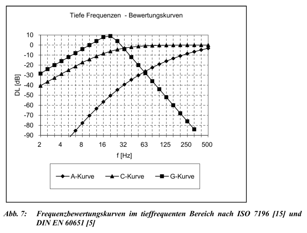 • Beispiel: Realer Infraschallpegel bei 10 Hz: 100 dB, nach A-Bewertung werden 30dB angezeigt – rechnerisch „verschwinden“ also 70 dB