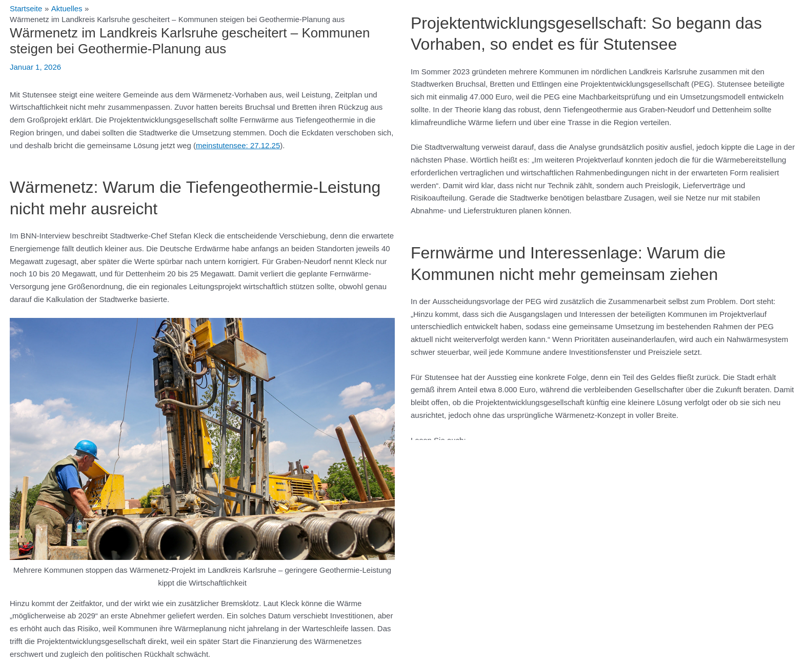 Da Geothermie-Bohrungen aber erhebliche Risiken birgen, sollte man wohl froh sein, nur (Steuer-)geld verloren zu haben. Fehlgeschlagene Versuche mit Grundwasser- oder Gebäudeschäden werden von den Versicherern i.d.R. ausgeschlossen.