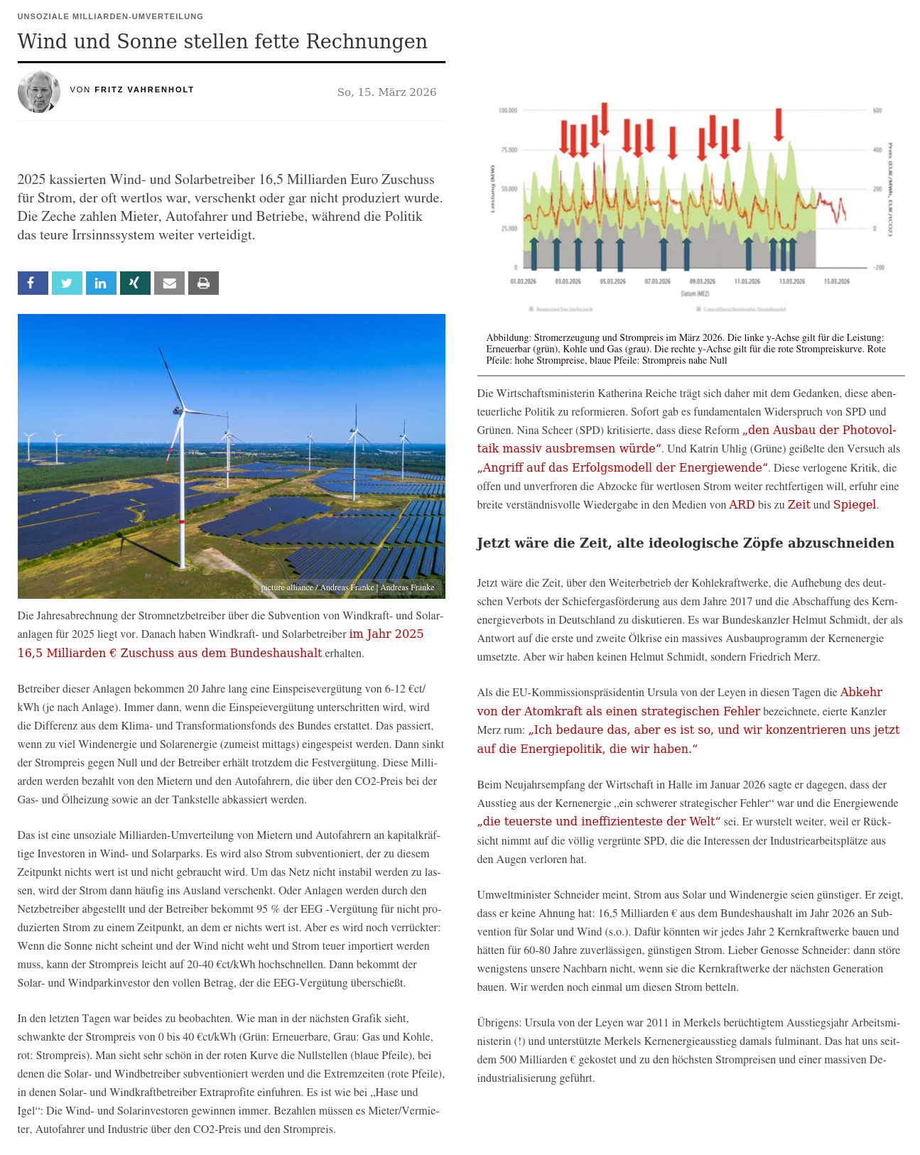 Die Wind- und Solarinvestoren gewinnen immer. Bezahlen müssen es Mieter/Vermieter, Autofahrer und Industrie über den CO2-Preis und den Strompreis.