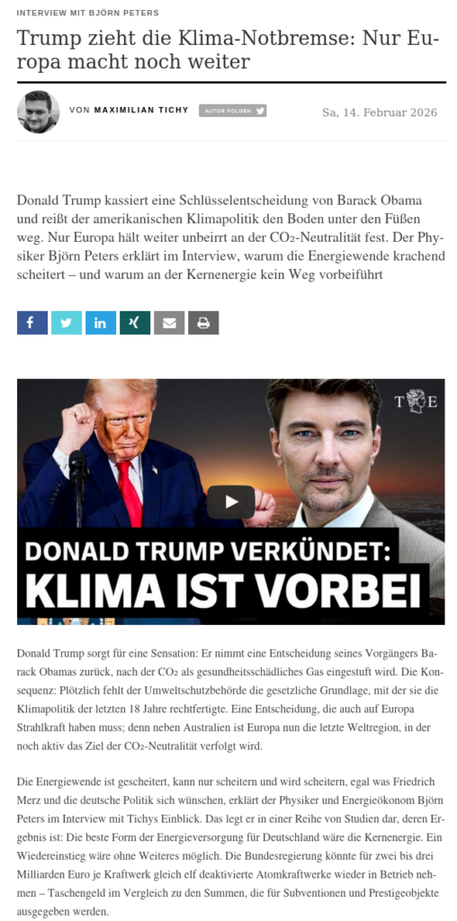 Wann wird es auch den Europäern dämmern, dass 1.) das Klima nicht gerettet werden muß und 2.) sie es alleine nicht tun könnten? Wie lange wird man sich den religösen Wahn noch leisten können…?
