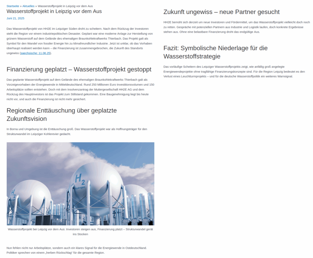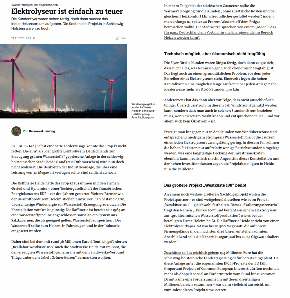 Wasserstoff-Projekte: Eine Chronik des Scheiterns