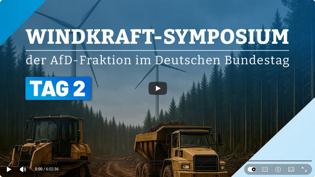 - 0:00:43 / 0:03:02 Auswirkungen der Windkraft auf die Menschen Dr. Rainer Rothfuß MdB Leiter des Arbeitskreises Menschenrechte und humanitäre Hilfe der AfD-Bundestagsfraktion